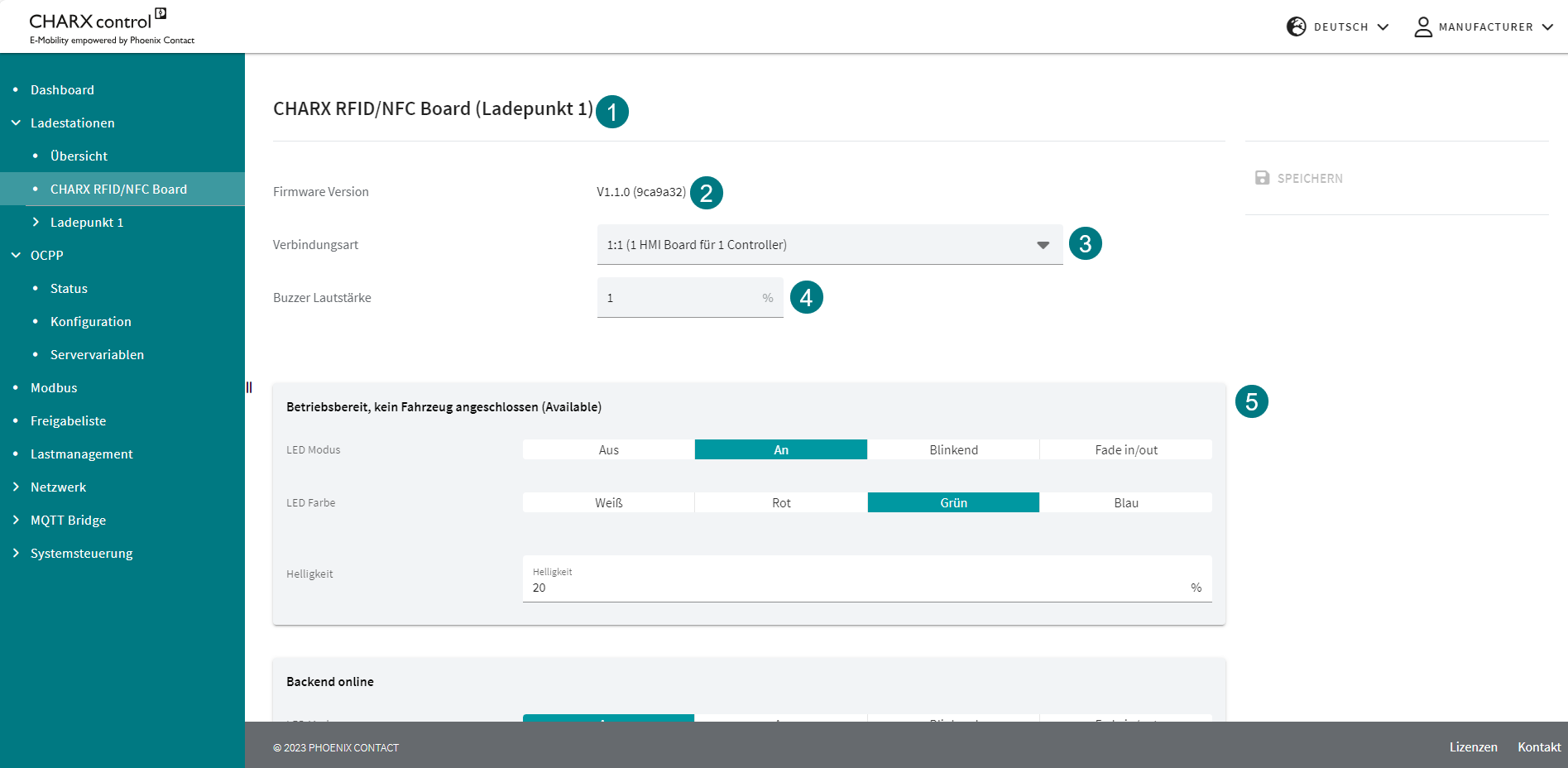 You can see the currently installed version and the status via the application overview. If necessary, you can restart individual programs via the overview. You can restart the entire system via the “REBOOT SYSTEM” button. Please note that a system restart will terminate active charging processes. It will then be necessary to log into the system again.