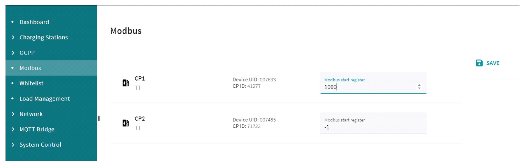 Provision of the Modbus/TCP interface for reading charging data and controlling charging processes. |
