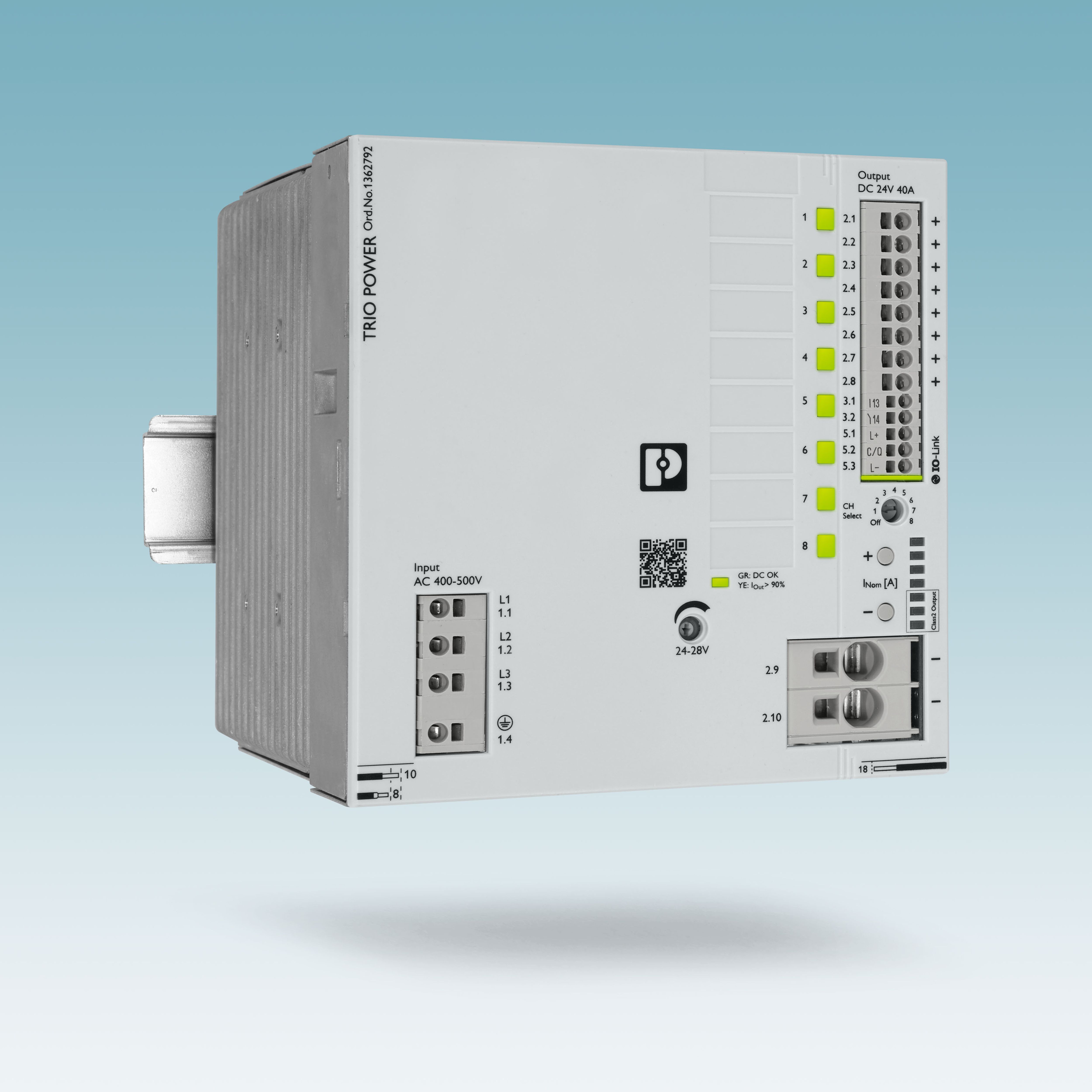 Třetí generace napájení Trio Power nadále stanovuje ve strojírenství nový standard. Zařízení jsou kompaktní, robustní a spolehlivá a vyznačují se jednoduchou manipulací. Nové třífázové napájecí zdroje s integrovanou, vícekanálovou přístrojovou ochranou zařízení zaujmou svojí prostorově úspornou konstrukcí a nyní jsou k dispozici také s jmenovitým výstupním proudem do 40 A. Tyto napájecí zdroje navíc vynikají velmi snadnou manipulací: technika připojení push in umožňuje rychlou instalaci bez použití nářadí. Integrovaná popisovací pole slouží k jednoduchému označování provozních prostředků a obvodů. Díky intuitivní koncepci uvedení do provozu jsou přístroje rychle připraveny k použití. Mechanické uzavření potenciometrů se stará o zabezpečení proti manipulaci.