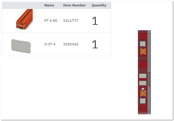 There is a default order in which the items are placed on the mounting rail during the assembly process. The process starts with the mounting rail, followed by the placement of the terminals, the combination of terminals and covers, the preparation and placement of bridges, and so on. You can change this default placement order on the Properties page of the add-on (you open the page by clicking the properties icon
