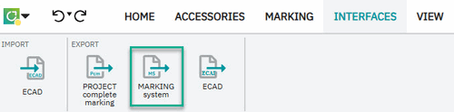 After successful integration, the MARKING system button can be used in the Export section of the Interface tab. Clicking this button exports all marking information and automatically opens it in MARKING system for further processing.