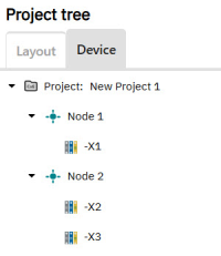 The Device view allows quick navigation to individual devices. Here, the project structure can be individually expanded by creating nodes at the desired position. In the Device view, users can also easily move placed devices to another node. The user selects the desired device in the project tree, holds down the left mouse button, and drags the device to the target node. As soon as the device is released on the new node, clipx ENGINEER automatically assigns it to the new position. In this way, the device project structure can be adapted step by step to individual requirements.