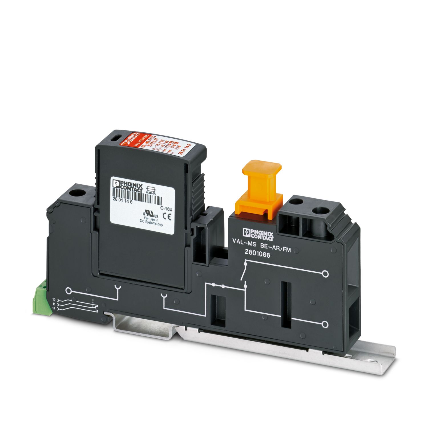 The VAL-MS-AR T1/T2 75/FM is a high-capacity SPD for Type 1 lightning as well as Type 2 switching surge currents, ideal for applications with high load currents and high surge risk.