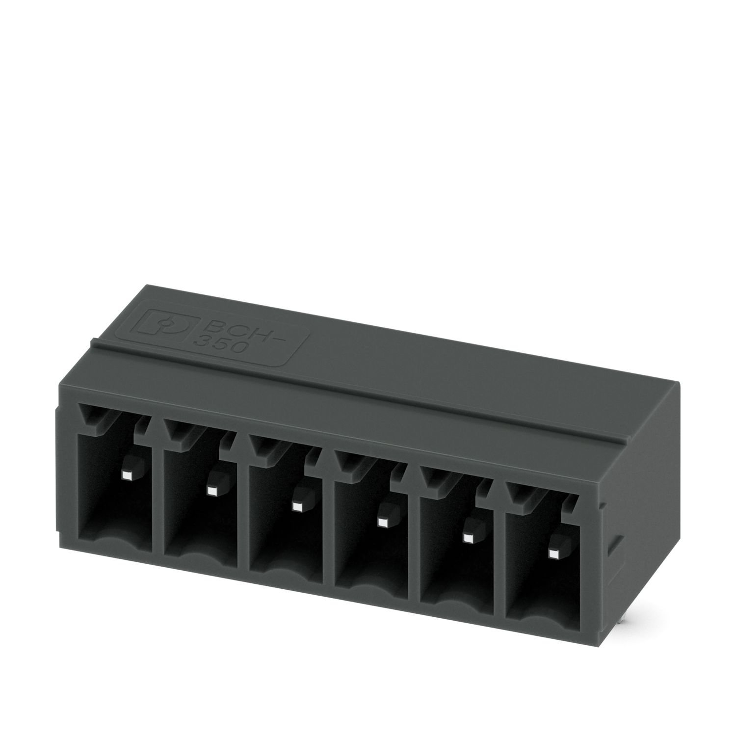 PCB headers, nominal cross section: 1.5 mm2, color: black, nominal current: 8 A, rated voltage (III/2): 160 V, contact surface: Sn, contact connection type: Pin, number of potentials: 6, number of rows: 1, number of positions: 6, number of connections: 6, product range: BCH-H, pitch: 3.5 mm, mounting: Wave soldering, pin layout: Linear pinning, solder pin [P]: 3.4 mm, number of solder pins per potential: 1, plug-in system: BASICLINE 1,5, Pin connector pattern alignment: Standard, locking: without, mounting method: without, type of packaging: packed in cardboard