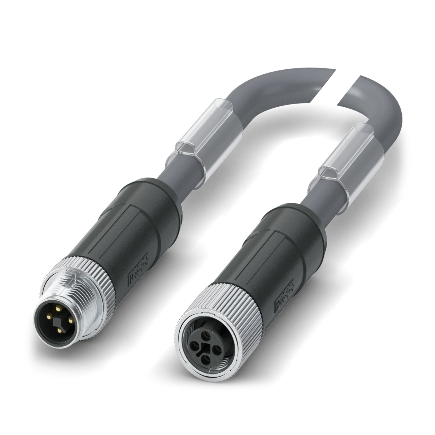 Power cable, 4-position, PVC, black-gray RAL 7021, Plug straight M12, coding: T, on Socket straight M12, coding: T, cable length: 1 m, For direct current up to 12 A/63 V
