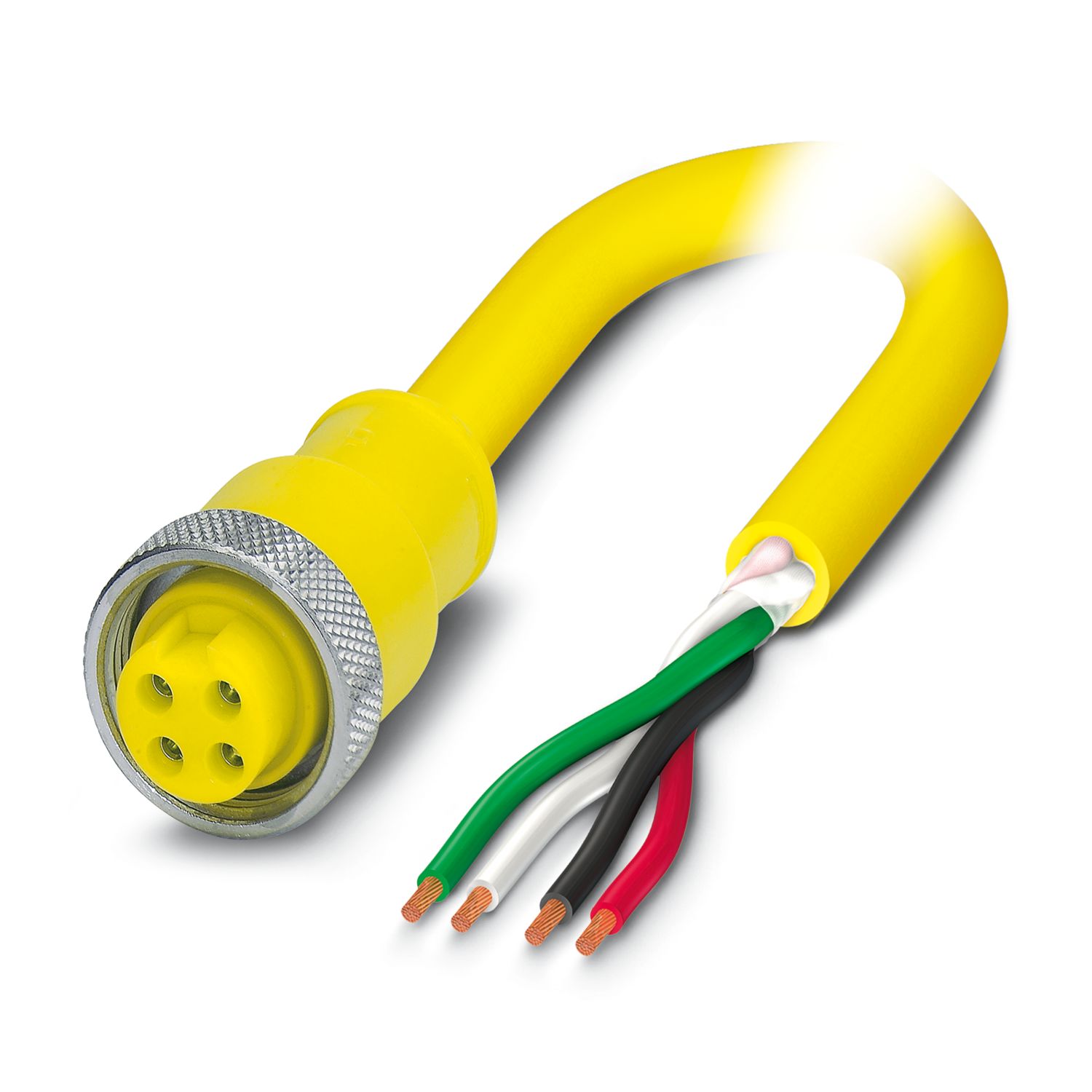 Sensor/actuator cable, 4-position, PVC, yellow, free cable end, on Socket straight 7/8"-16UNF, coding: A, cable length: 2 m