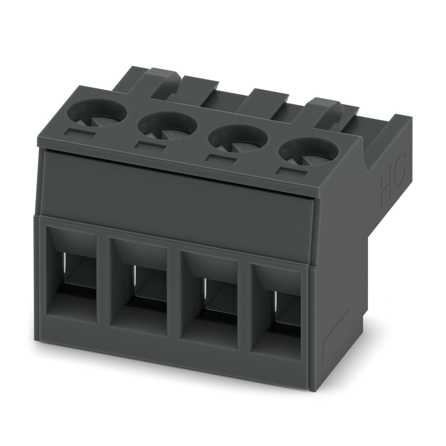 PCB connector, nominal cross section: 2.5 mm2, color: black, nominal current: 16 A, rated voltage (III/2): 320 V, contact surface: Sn, contact connection type: Socket, number of potentials: 4, number of rows: 1, number of positions: 4, number of connections: 4, product range: MSTBT 2,5 HC/..-ST, pitch: 5 mm, connection method: Screw connection with tension sleeve, screw head form: L Slotted, conductor/PCB connection direction: 0 °, locking clip: - Locking clip, plug-in system: COMBICON MSTB 2,5 HC, locking: without, mounting method: without, type of packaging: packed in cardboard
