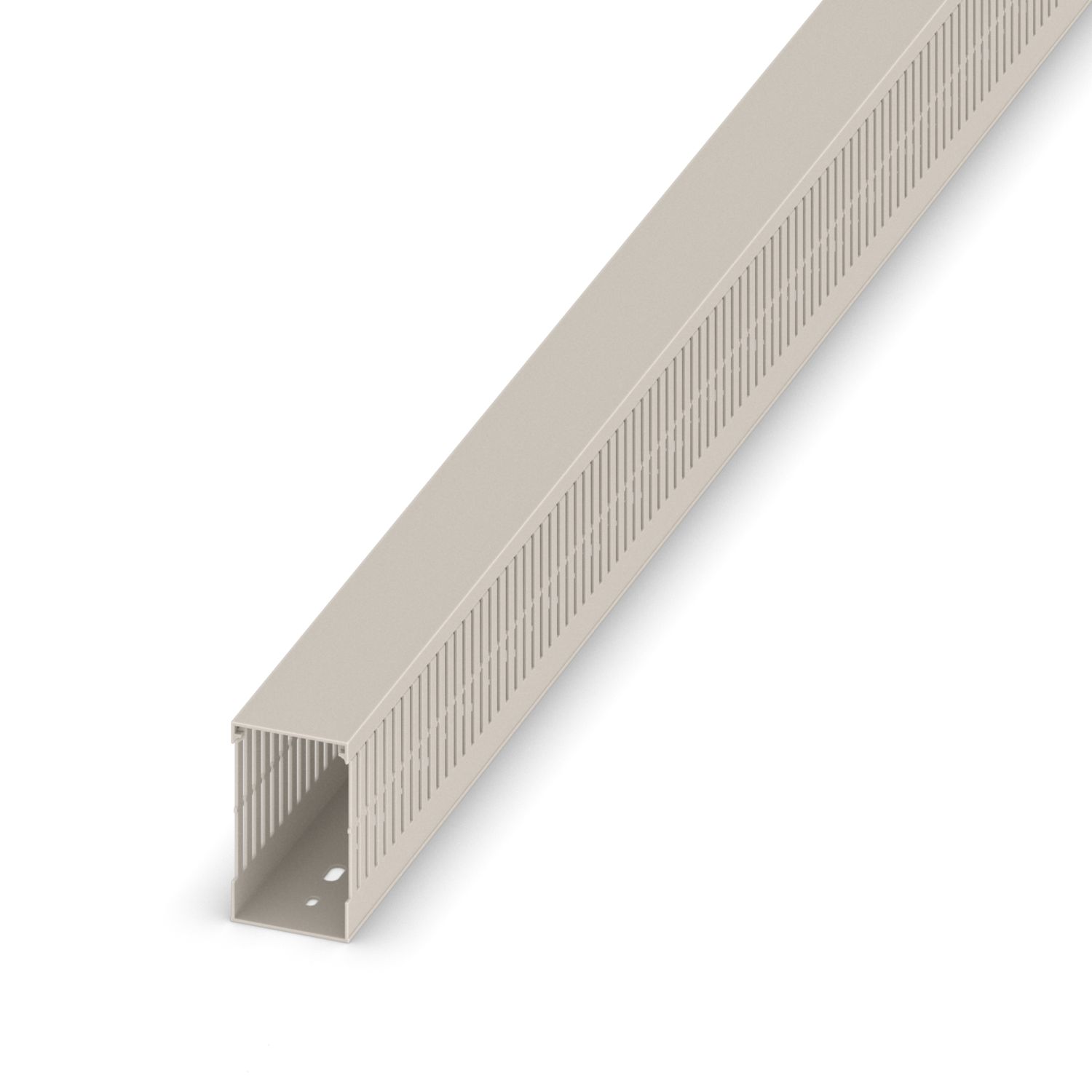 Cable duct for installation and mounting in control cabinets, gray, comprising upper part and mounting base, width: 50 mm, height: 80 mm, length: 2000 mm