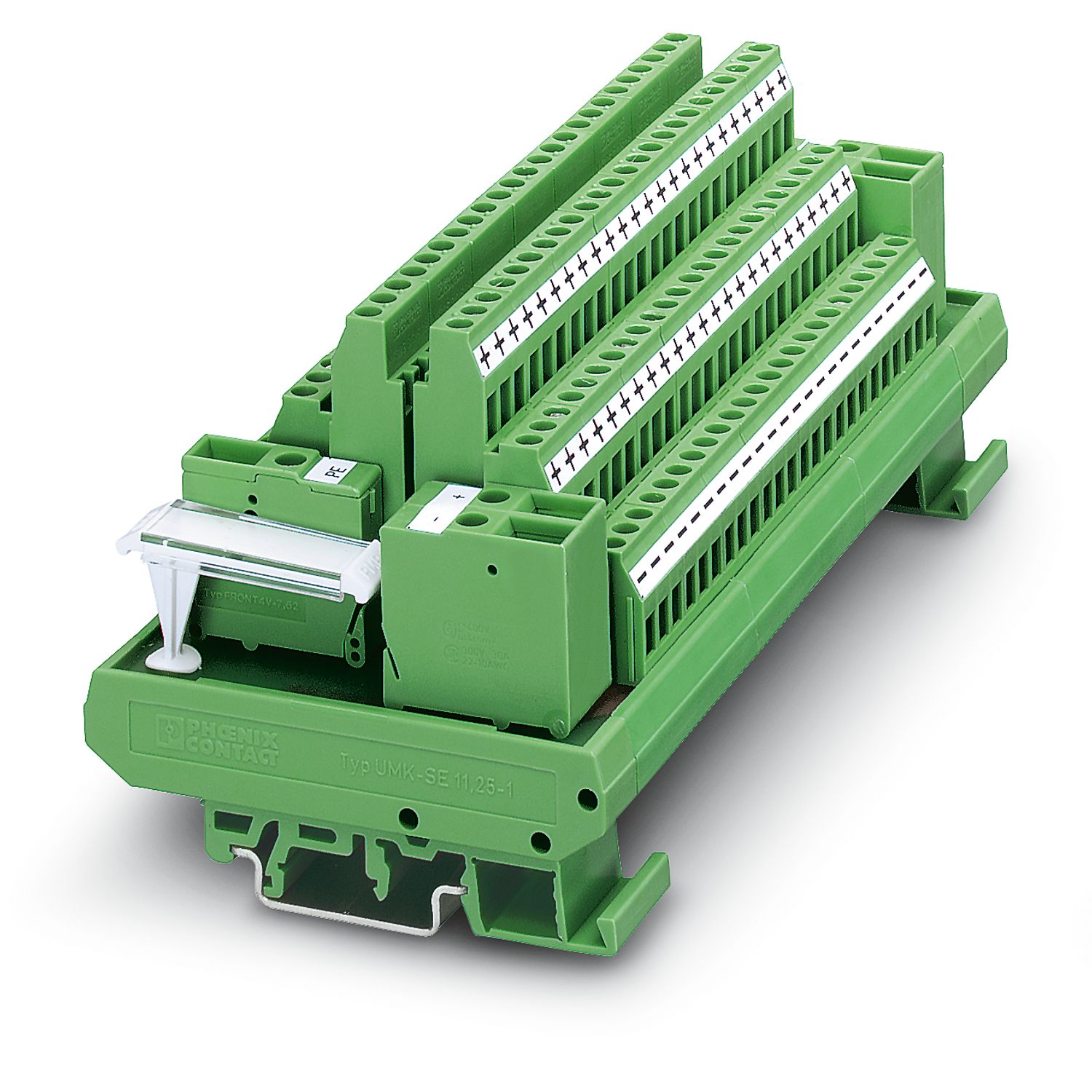 VARIOFACE module, with three equipotential busbars (+, -, PE) for potential distribution, for mounting on NS 35/7.5 or NS 32