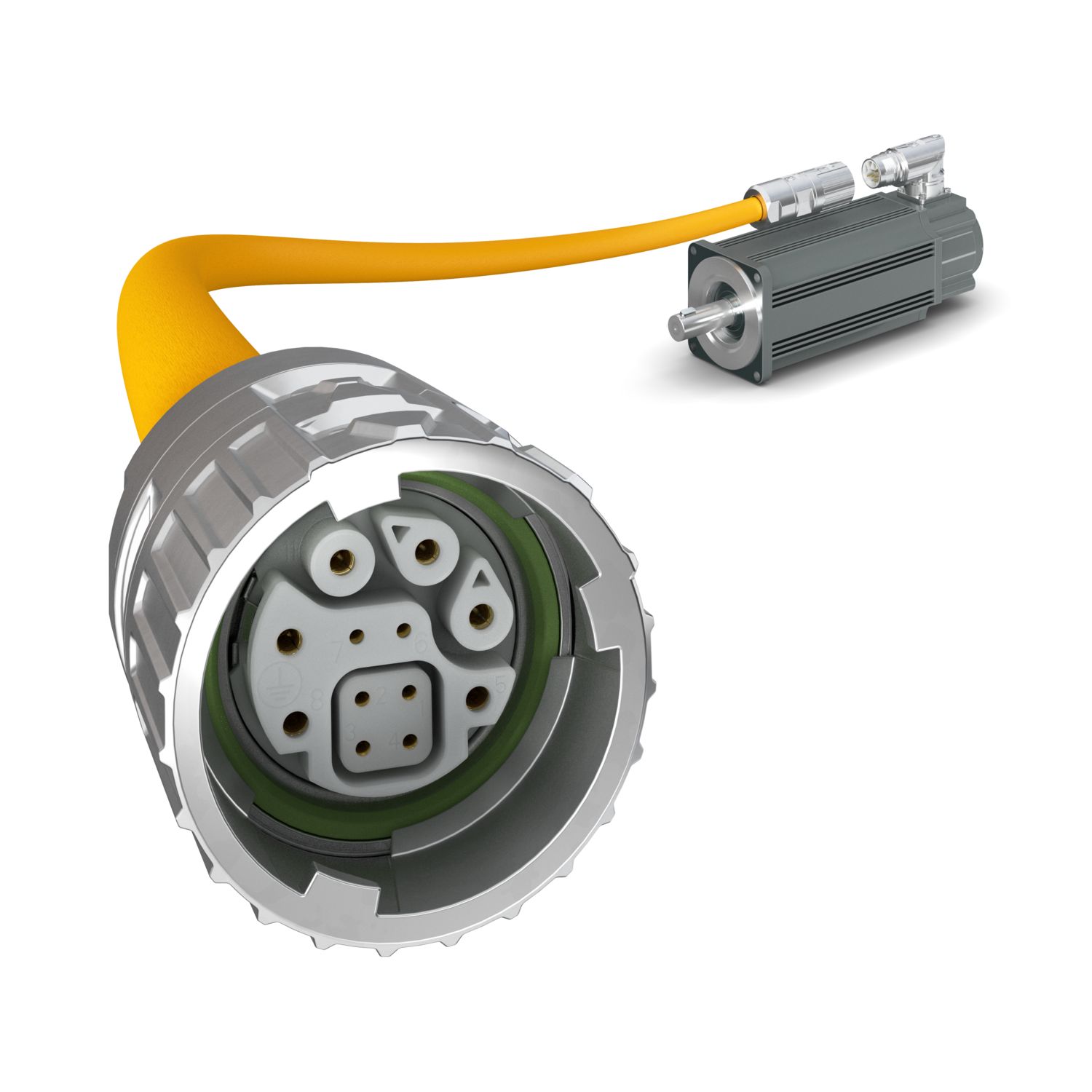 Le connecteur hybride M17 PRO a un courant admissible de 14 A au minimum. Le connecteur prend en charge le protocole Hiperface DSL (~10Mbit/s).