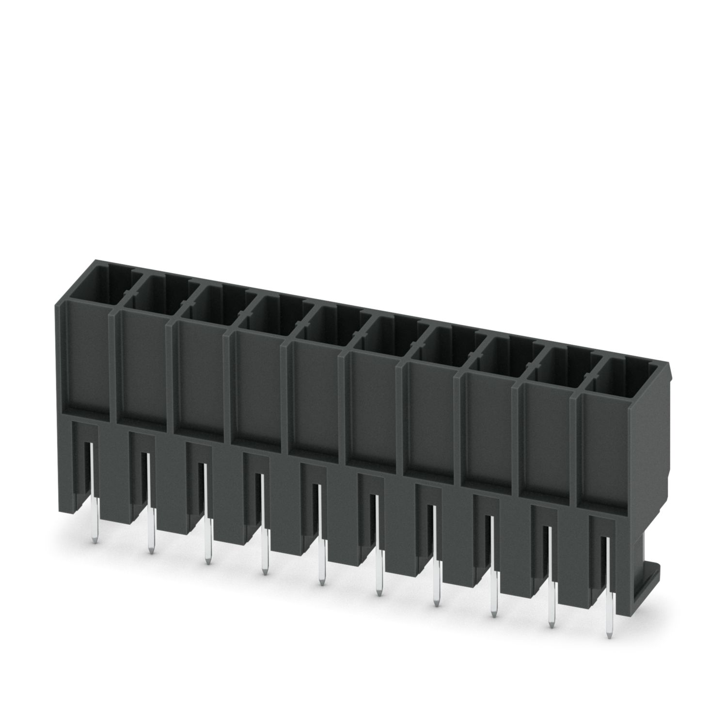Embase de circuit imprimé, section nominale: 4 mm2, coloris: noir, intensité nominale: 20 A, tension de référence (III/2): 630 V, surface des contacts: Sn, type de contact: Mâle, nombre de potentiels: 10, nombre de rangées: 1, nombre de pôles: 10, nombre de connexions: 10, gamme d'articles: PCV 4/..-G, pas: 7,62 mm, montage: Soudage à la vague, plan des broches: Brochage linéaire, longueur de broche [P]: 5,1 mm, nombre de picots par potentiel: 2, système débrochable: COMBICON PC 4, Orientation du modèle d'enfichage: Standard, verrouillage: sans, type de fixation: sans, type de conditionnement: emballé dans un carton