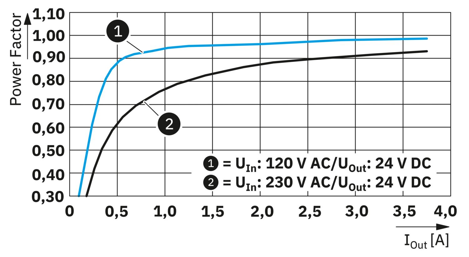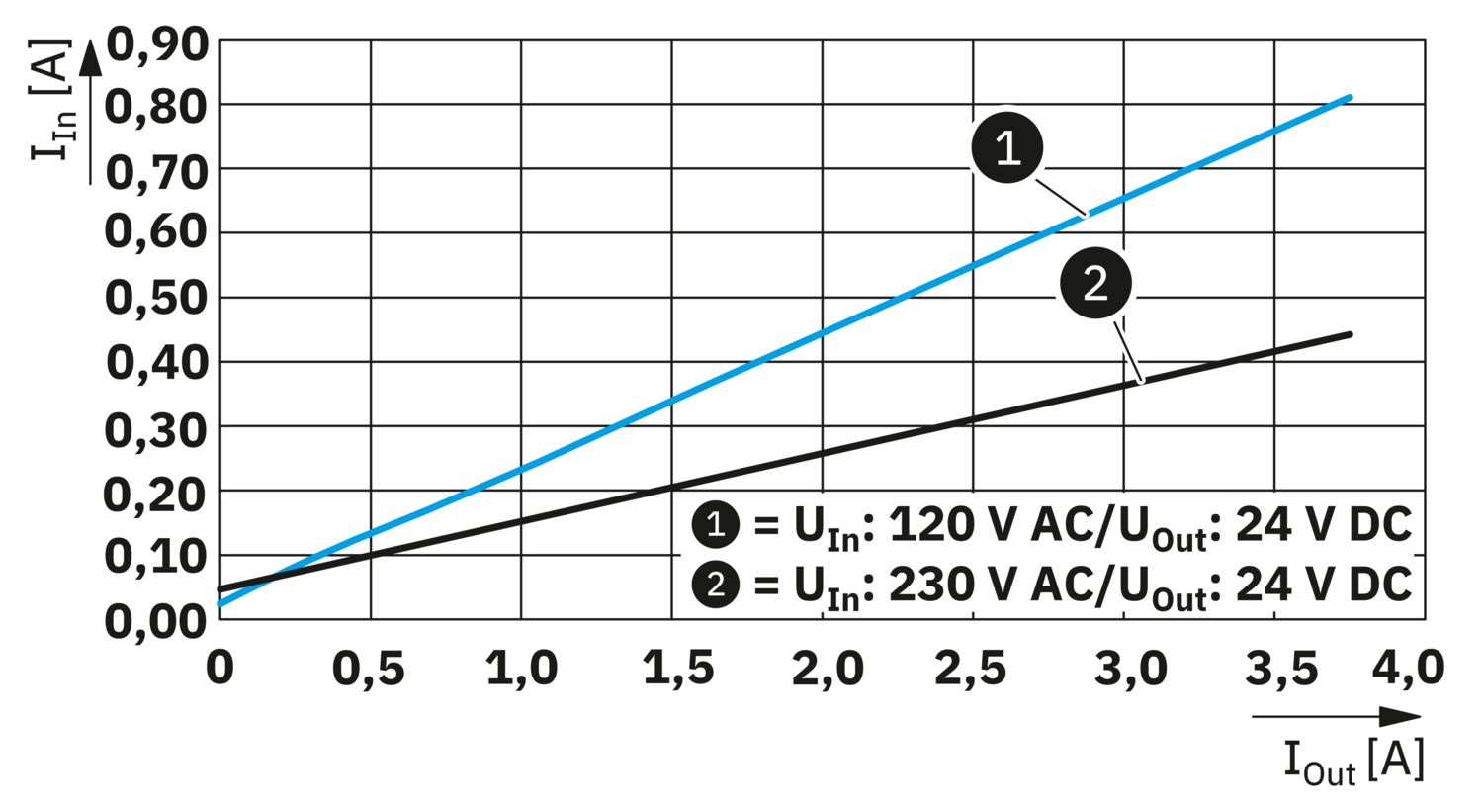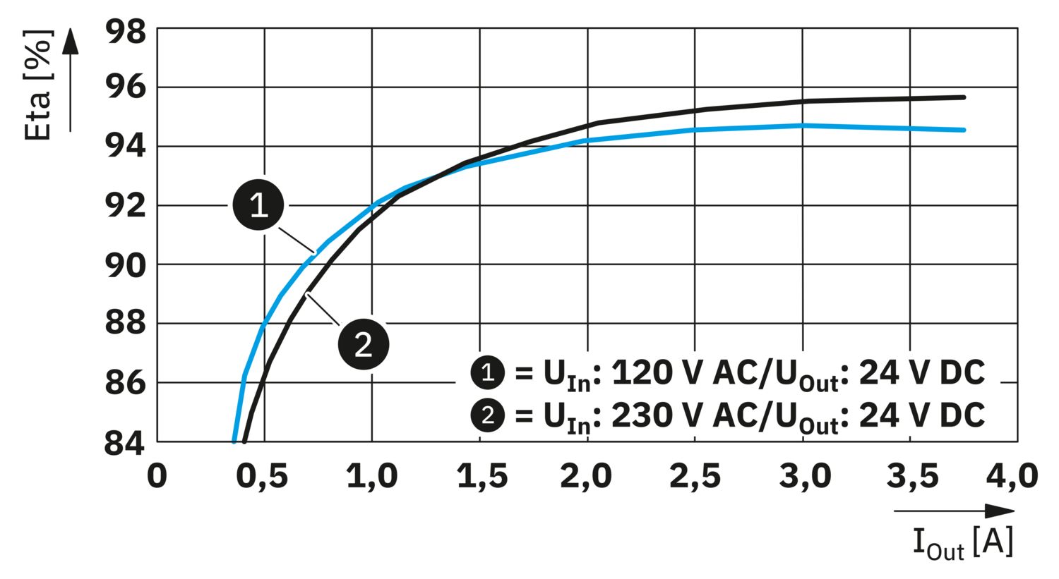 | Jelzésmódok | LED DC OK - jelállapot üzemben (UN = 24 V DC, IOut = IN) |