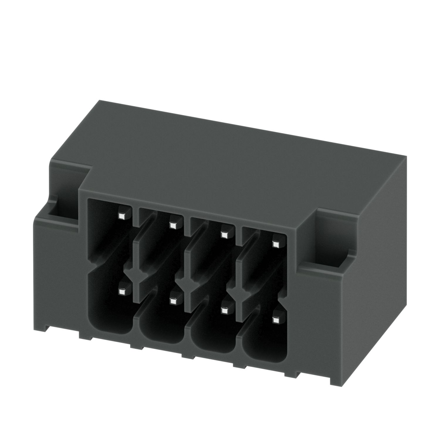 Presa base per circuiti stampati, sezione nominale: 1,5 mm2, colore: nero, corrente nominale: 8 A, tensione di dimensionamento (III/2): 160 V, superficie contatti: Sn, tipo di connessione del contatto: Spina, numero di file: 2, numero poli: 4, serie di prodotti: DMC 1,5/..-G1-LR-THR, passo: 3,5 mm, montaggio: Saldatura TTHR / ad onde, layout pin: Pinning lineare, lunghezza pin [P]: 2,6 mm, numero di pin di saldatura per potenziale: 1, sistema di spine: COMBICON DFMC 1,5, Orientamento pin d'inserimento: Standard, bloccaggio: Bloccaggio Lock and Release, tipo di fissaggio: Lock + Release, tipo di confezione: confezionato nel cartone