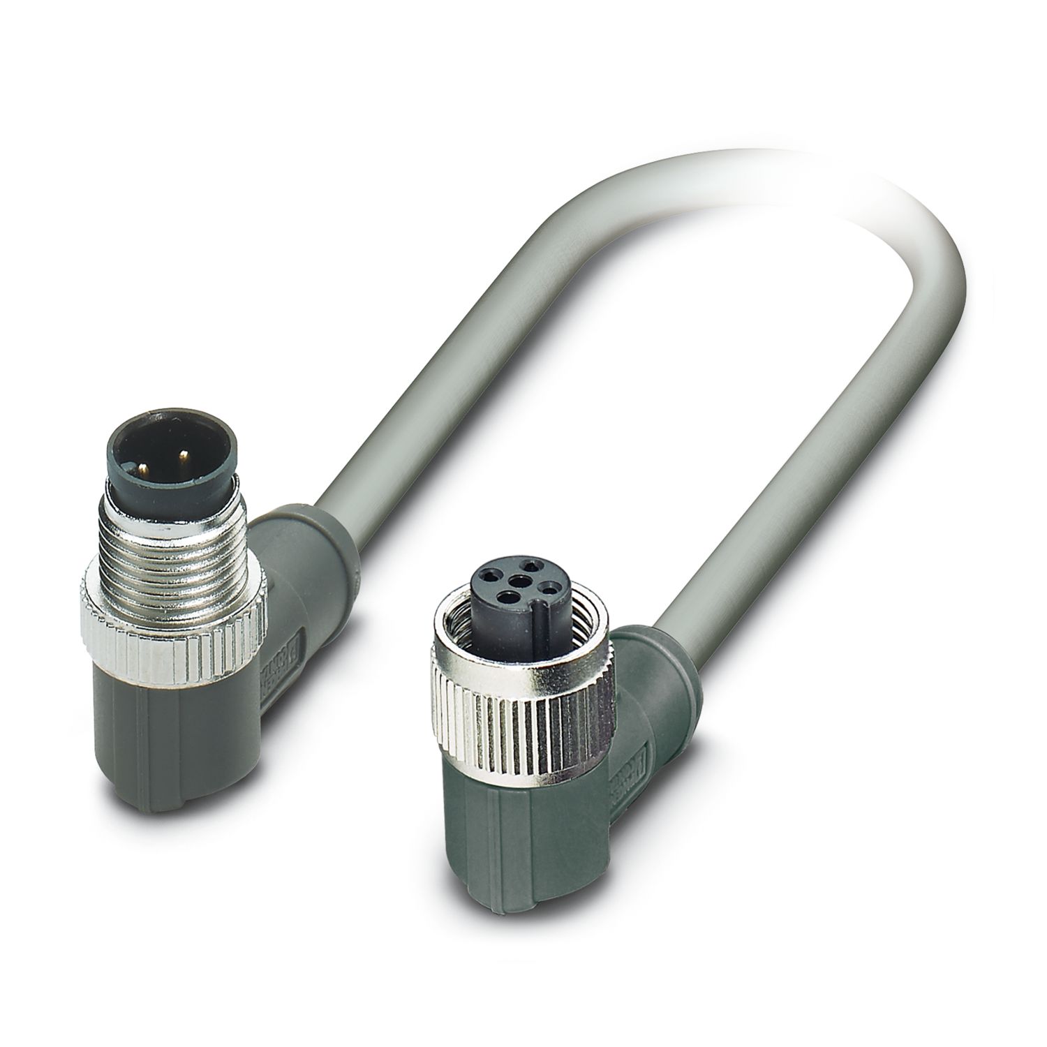 センサ/アクチュエータケーブル、3-極、PVC、グレー RAL 7001、プラグ エルボー M12、キーイング: A、上 メス エルボー M12、キーイング: A、ケーブル長: 2 m