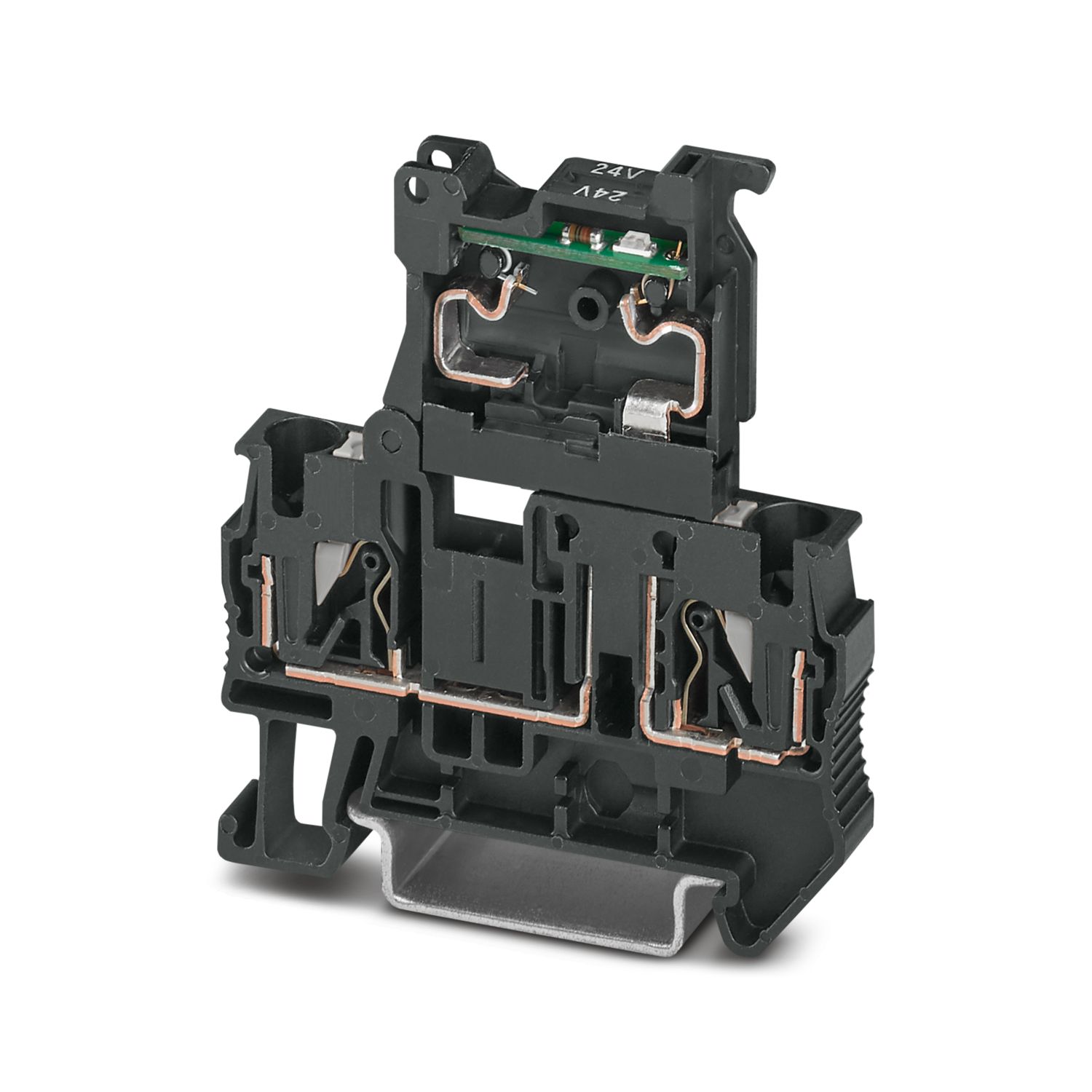퓨즈 단자대, 퓨즈 타입: 유리 / 세라믹 / ..., 퓨즈 타입: G / 5 x 20, 정격 전압: 24 V, 정격 전류: 6.3 A, 핀 수: 1, 연결 방법: 푸쉬인 연결, 정격 케이블 사이즈: 4 mm2, 케이블 사이즈: 0.5 mm2- 4 mm2, 마운팅 타입: NS 35/7,5, NS 35/15, 색상: 짙은 회색 B RAL 7043