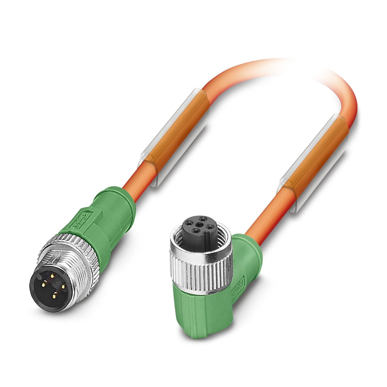 센서/액추에이터 케이블, 4-핀, TPU 할로겐-프리, 납땜 스퍼터 방지, 고유연성, 오렌지색(RAL 2003), 무광, 플러그 직선 M12, 코딩: A, 켜짐 소켓 직각 M12, 코딩: A, 케이블 길이: 자유 입력(0.2 ... 40.0 m)