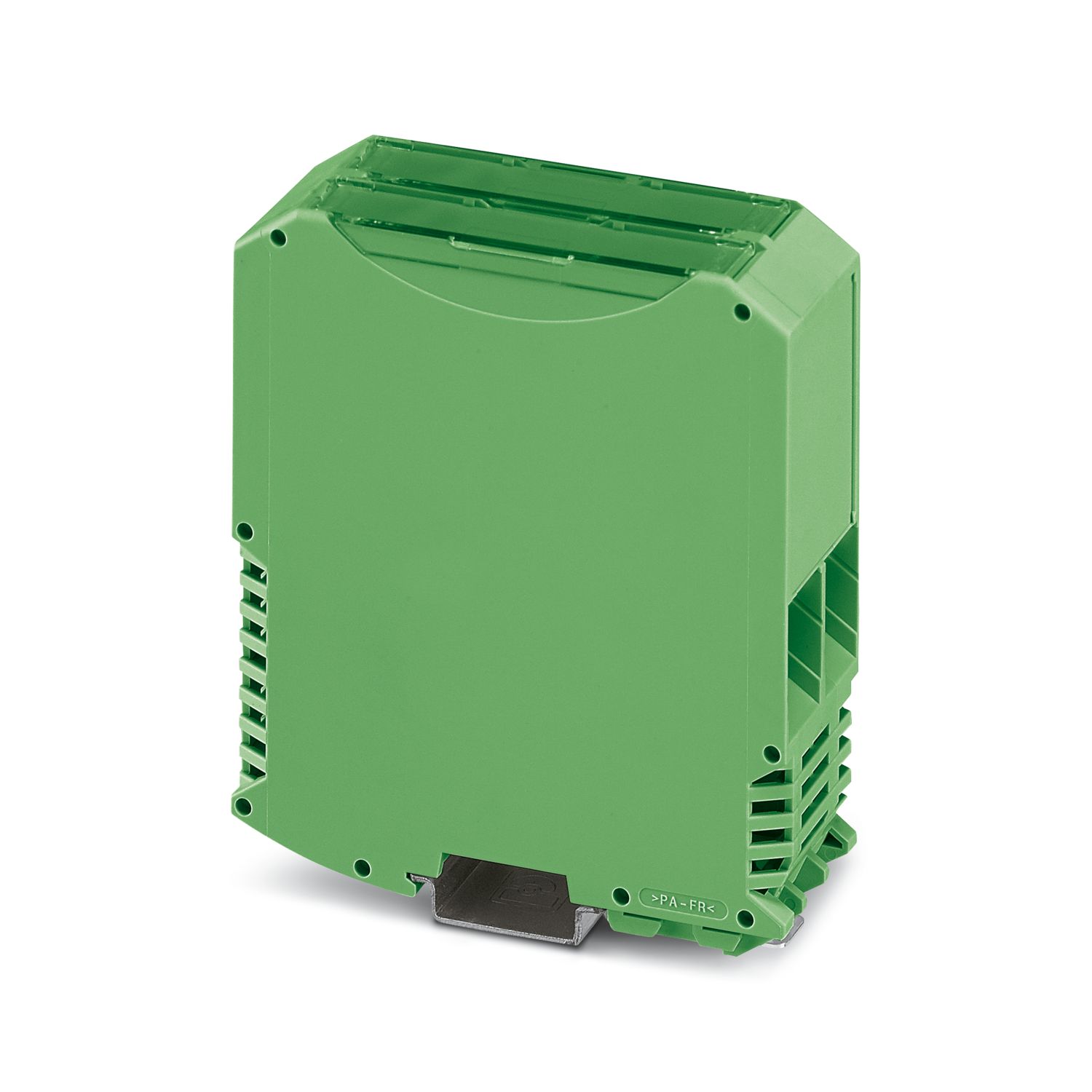 Montagerailbehuizing, Hoge bouwvorm, met ventilatiesleuven, breedte: 35,2 mm, hoogte: 99 mm, diepte: 113,65 mm, kleur: groen (vergelijkbaar RAL 6021), doorverbinding: Montagerail-busconnector, aantal polen dwarsverbinding: 5