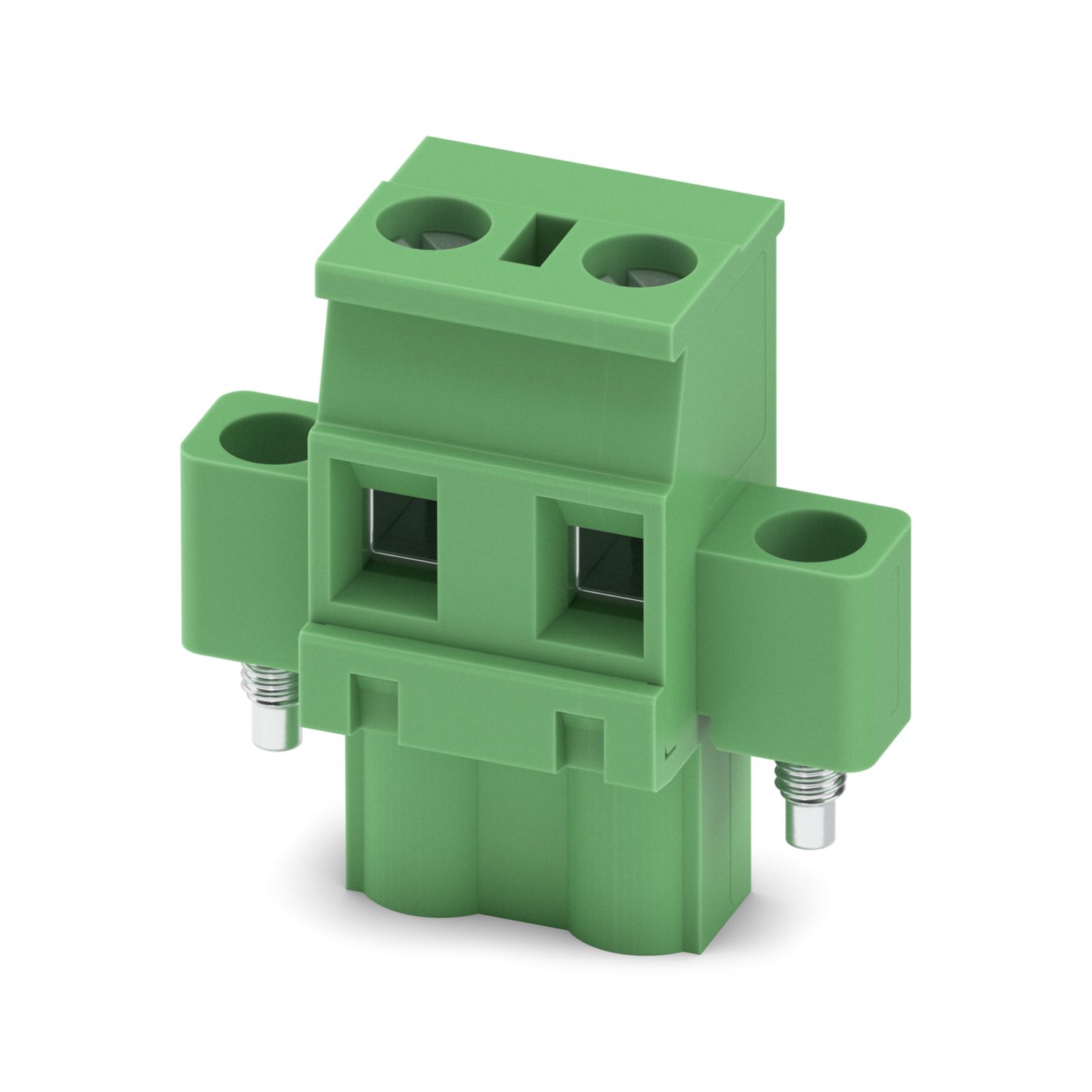 PCB插座, 额定横截面: 2.5 mm2, 颜色: 绿色, 额定电流: 12 A, 额定电压(III/2): 630 V, 触点表面: Sn, 触点类型: 针式插头, 电位数: 2, 行数: 1, 位数: 2, 连接量: 2, 产品系列: GMSTB 2,5/..-GF, 针距: 7.62 mm, 安装: 波峰焊, 导线/PCB连接方向: 0 °, 针脚排列: 直线排列, 焊针[P]: 3.23 mm, 每个电势的焊针数量: 1, 插拔系统: COMBICON MSTB 2,5, 针式连接器样式对齐: 标准, 互锁: 螺钉锁紧, 安装方式: 螺钉法兰, 包装类型: 纸箱包装