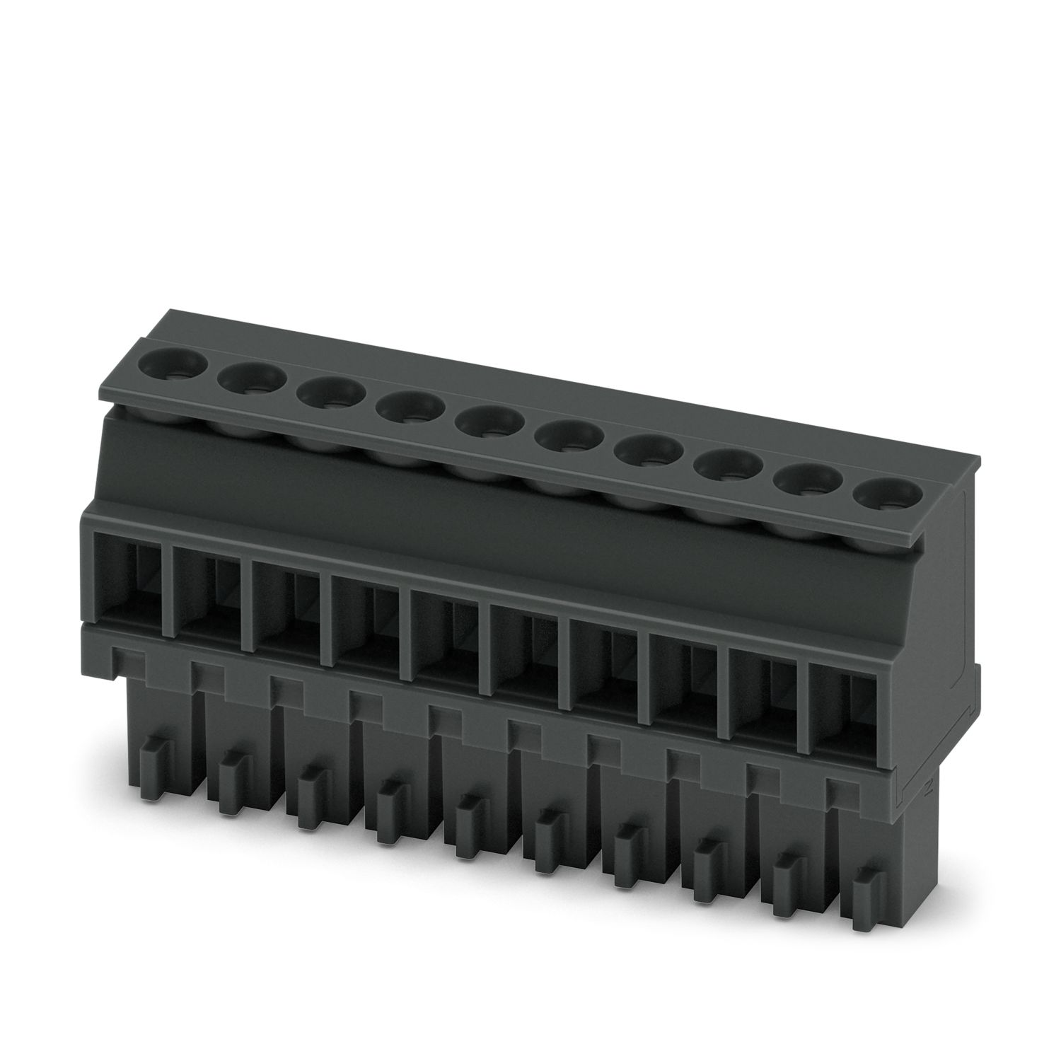 PCB插拔式连接器, 额定横截面: 1.5 mm2, 颜色: 黑色, 额定电流: 8 A, 额定电压(III/2): 160 V, 触点表面: Sn, 触点类型: 孔式插头, 行数: 1, 位数: 10, 产品系列: BCVP-R, 针距: 3.5 mm, 接线方式: 带压片的螺钉连接, 螺钉头规格: L 开槽, 导线/PCB连接方向: 90 °, 插拔系统: BASICLINE 1,5, 互锁: 不带, 安装方式: 不带, 包装类型: 纸箱包装