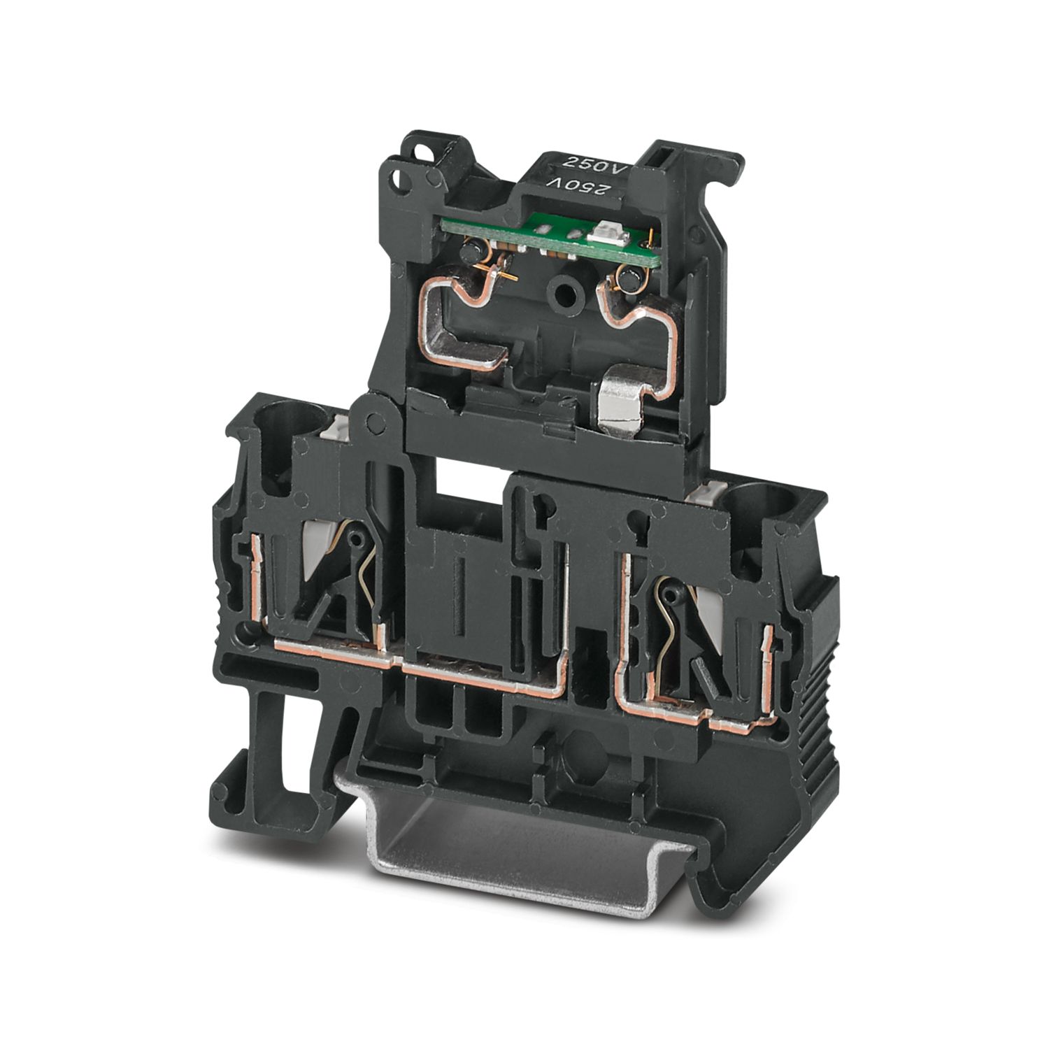 保险丝接线端子, 保险丝类型: 玻璃 / 陶瓷 / ..., 保险丝类型: G / 5 x 20, 标称工作电压: 250 V, 额定电流: 6.3 A, 位数: 1, 接线方式: 直插式连接, 额定接线容量: 4 mm2, 接线容量: 0.5 mm2- 4 mm2, 安装方式: NS 35/7,5, NS 35/15, 颜色: 交通灰B RAL 7043